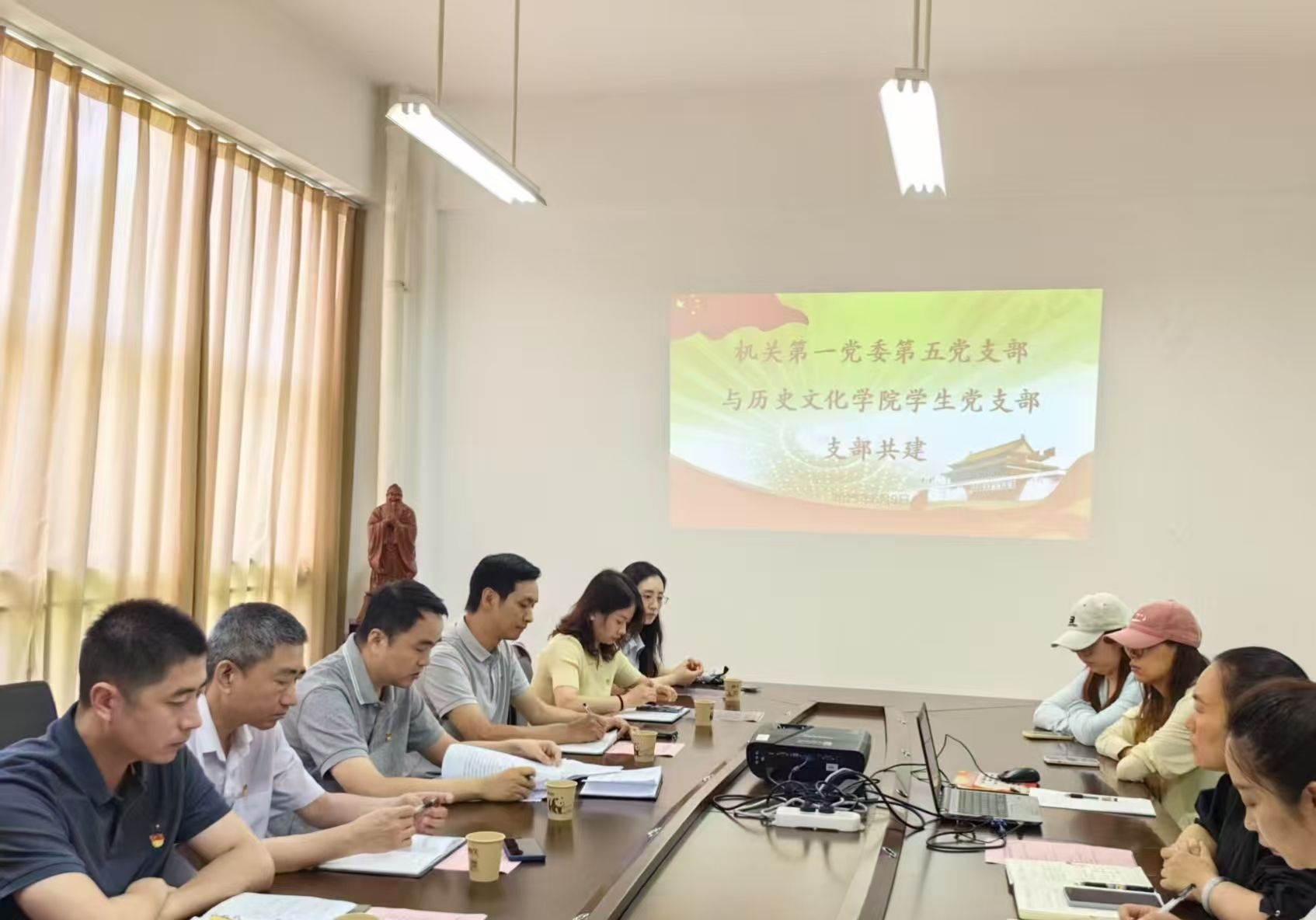 为开展深入贯彻中央八项规定精神学习教育,强化年轻干部纪律意识,筑牢拒腐防变思想防线,机关第一党委第五支部与历史文化学院学生党支部于6月9日在文博楼A305会议室开展支部结对共建活动,历史文化学院党总支副书记刘洪主持会议。