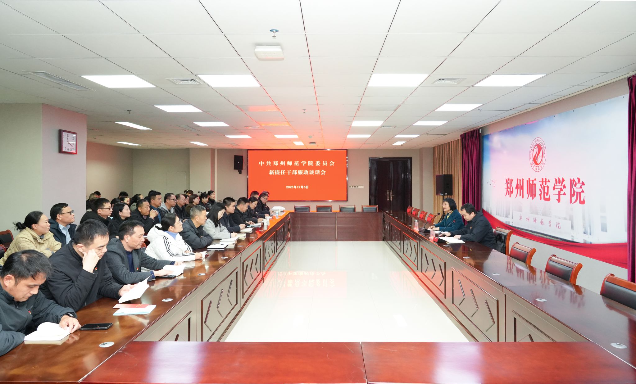 为引导新提任领导干部绷紧廉洁之弦、守牢履职底线,12 月 5 日,我校组织召开新提任中层干部集体廉政谈话会。全校 49 名新提任中层干部参会,会议由纪委副书记石纪东主持。