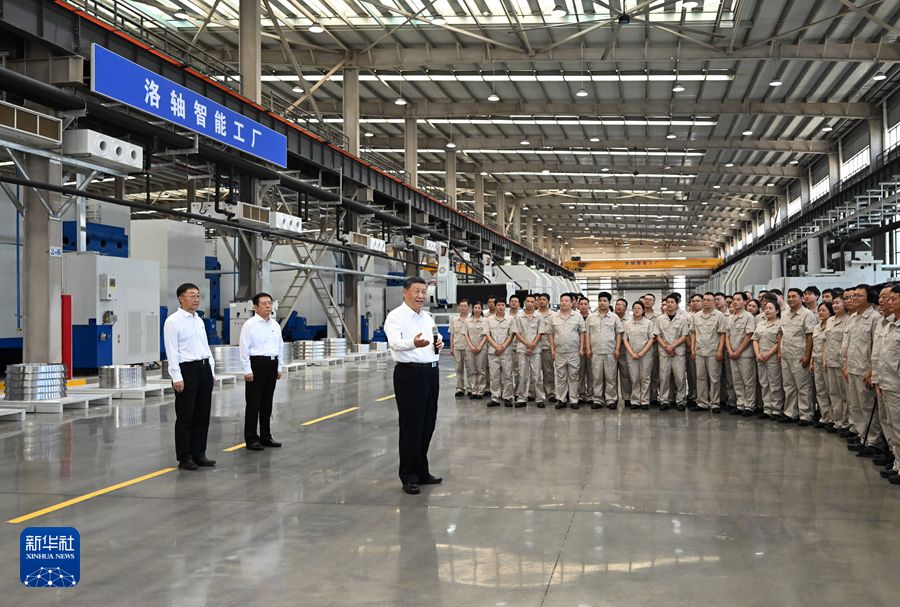 19日下午,习近平首先来到洛阳轴承集团股份有限公司考察。该公司前身为“一五”期间建成的洛阳轴承厂。在智能工厂,习近平了解企业发展历程,听取不同类型轴承产品用途和性能介绍,走近生产线察看生产流程。他对围拢过来的企业职工说,制造业是国民经济的重要支柱,推进中国式现代化必须保持制造业合理比重。现代制造业离不开科技赋能,要大力加强技术攻关,走自主创新的发展路子。他勉励职工发扬主人翁精神,在企业发展中奋发有为、多作贡献。